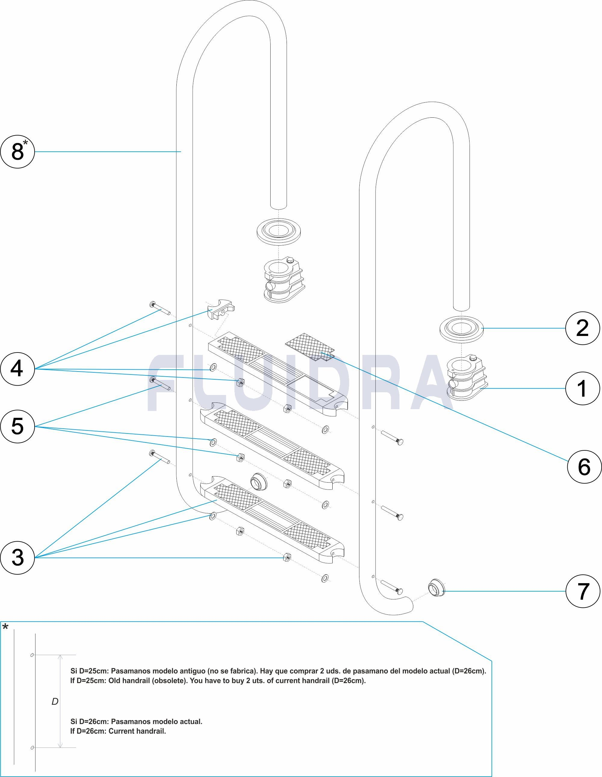 Scara standard pentru piscina din inox AISI 316.