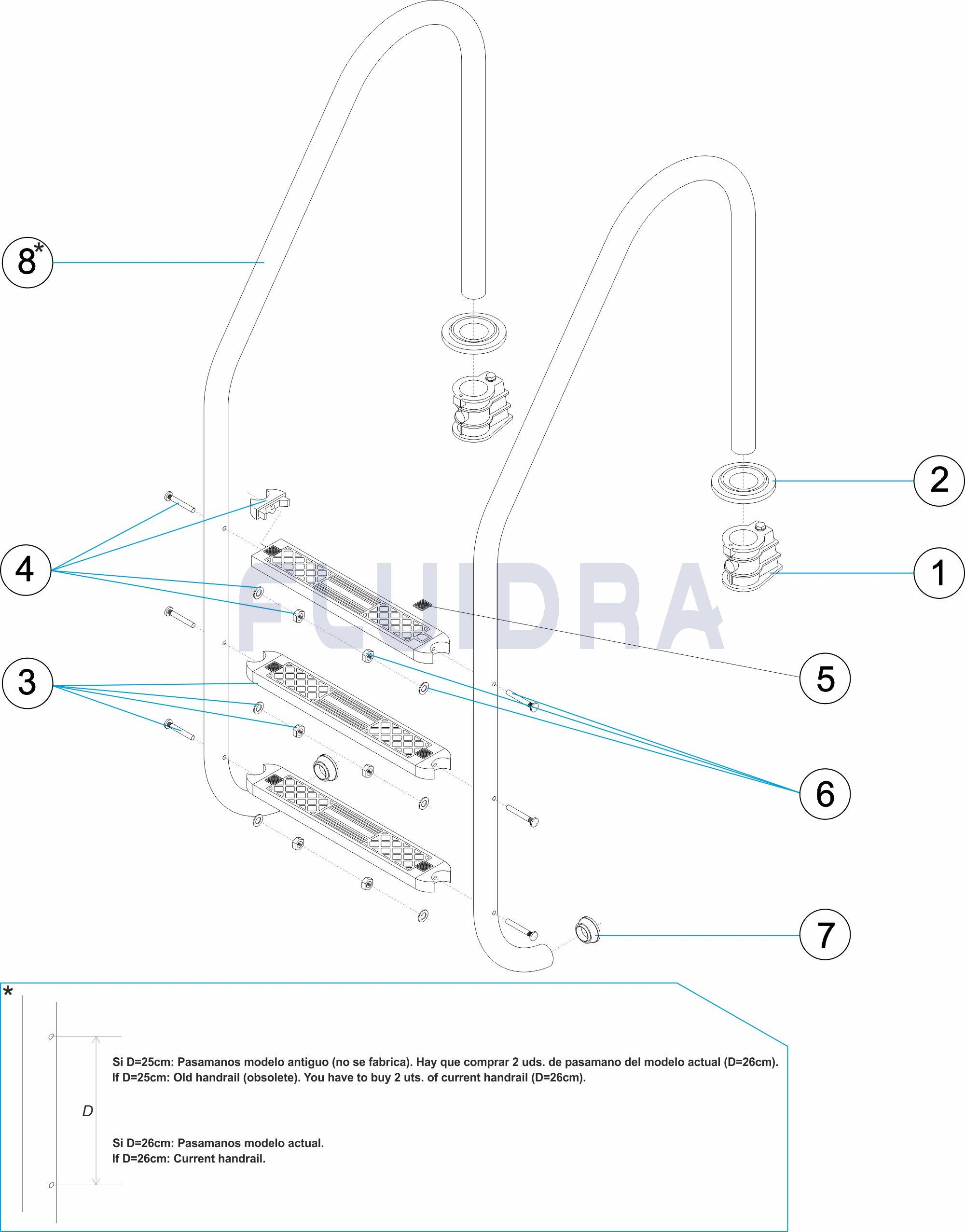 Dimensiunea tubului este de 43 mm. Este prevazuta cu trepte antiderapante.