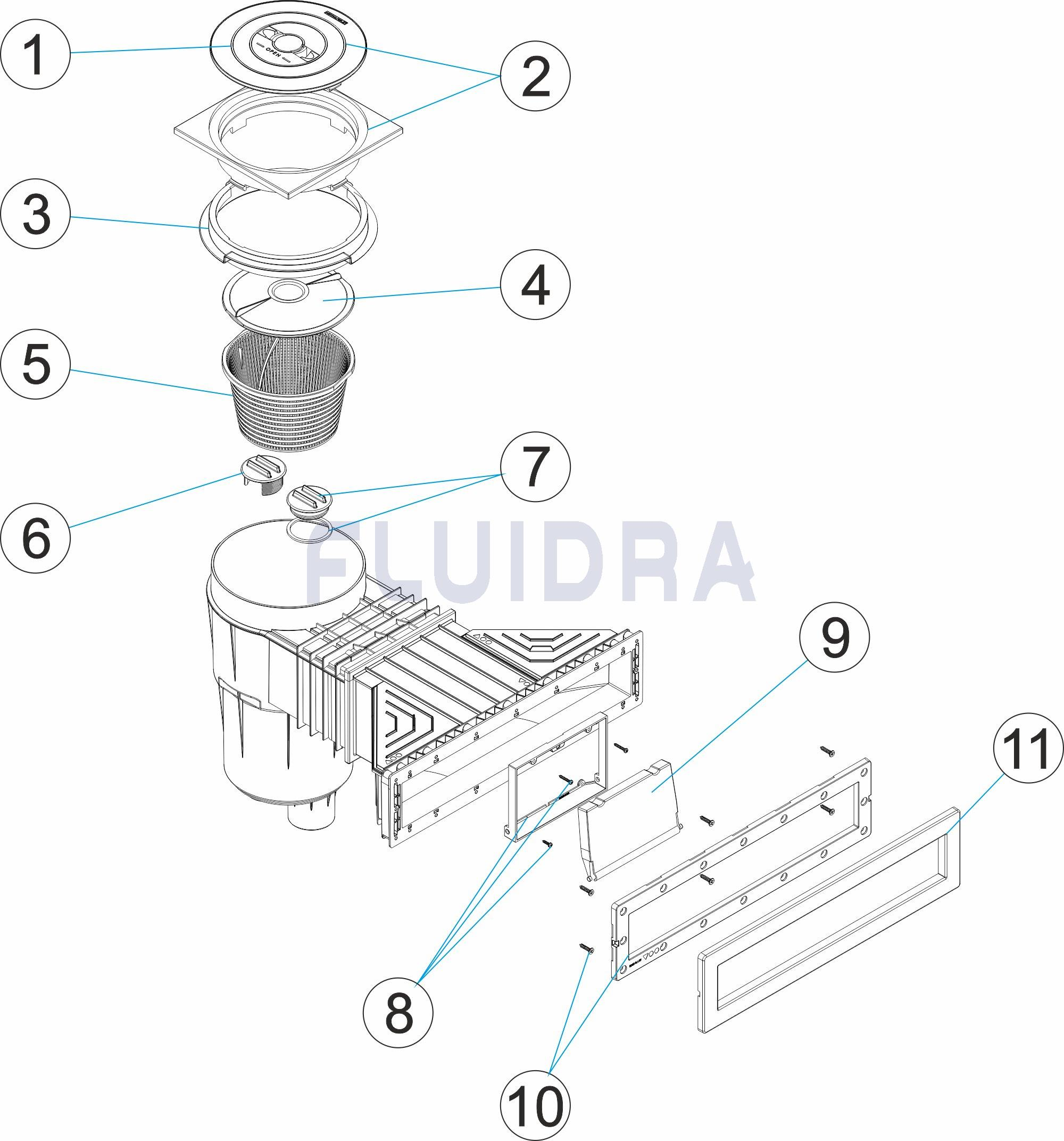 Skimmerul este unul dintre cele mai importante echipamente ale uni bazin. Prin el trece toata apa piscinei inmagazinand in cos toate gunoaiele, insectele, resturile de frunze, nelasand ca acestea sa ajunga la pompa.